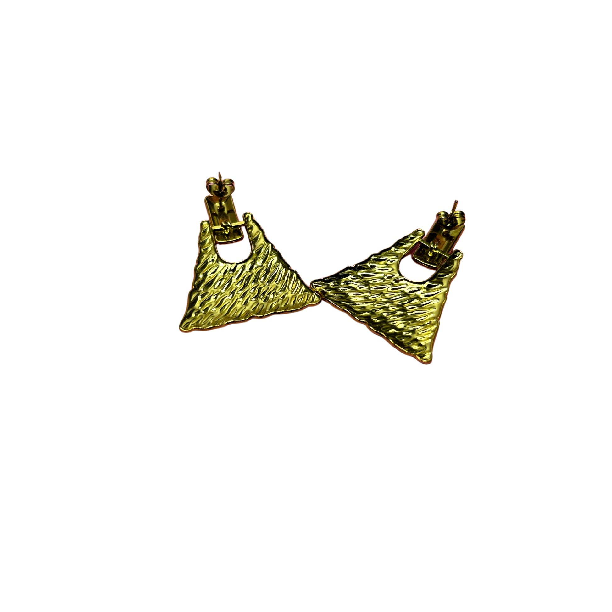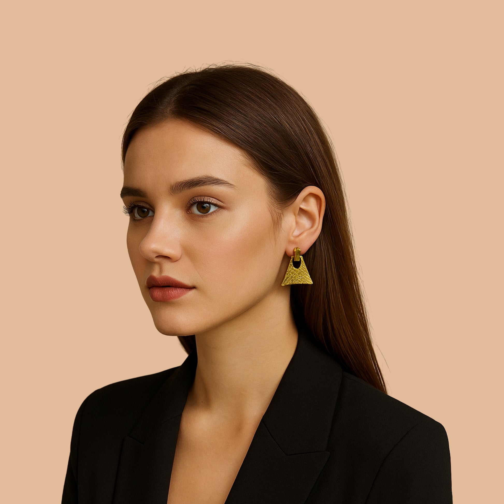Make a bold statement with these Anti-Tarnish Golden Triangle Earrings. Featuring a chic geometric design and a lasting gold shine, these earrings are lightweight, stylish, and perfect for any occasion. Designed with anti-tarnish coating, they stay radiant wear after wear.