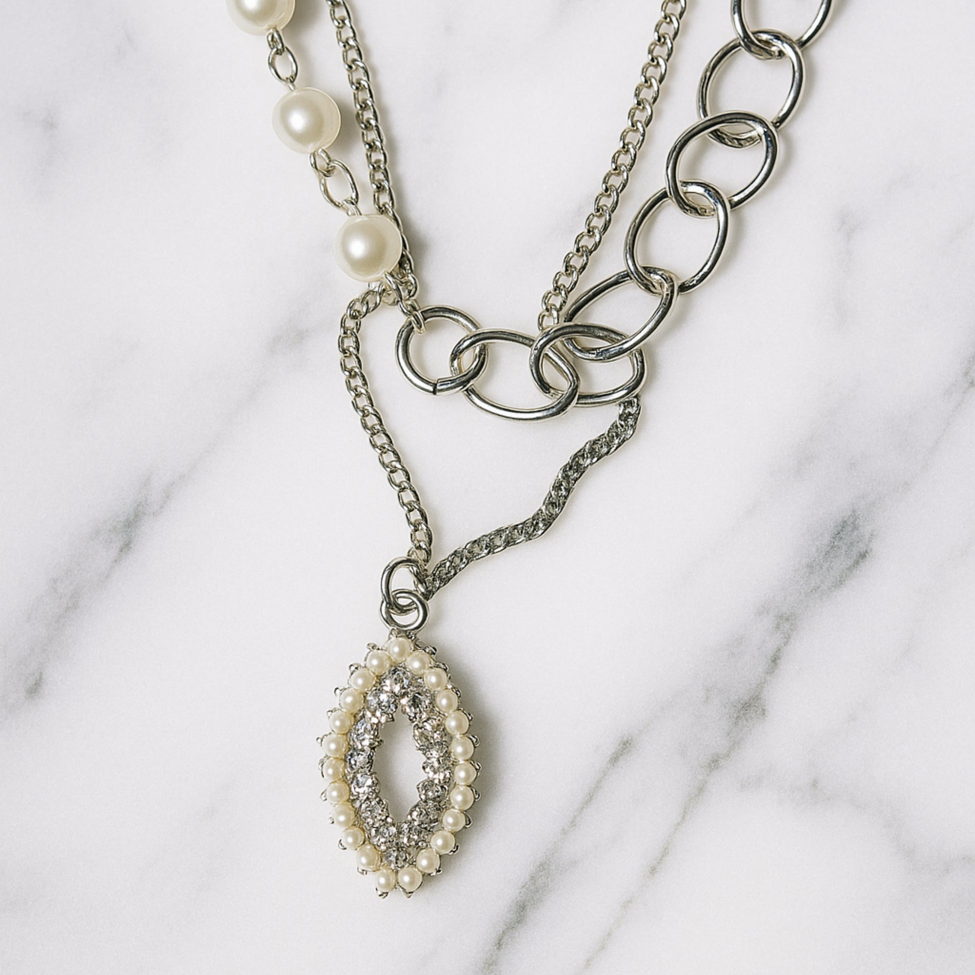 Chunky Link and Pearl Statement Necklace.