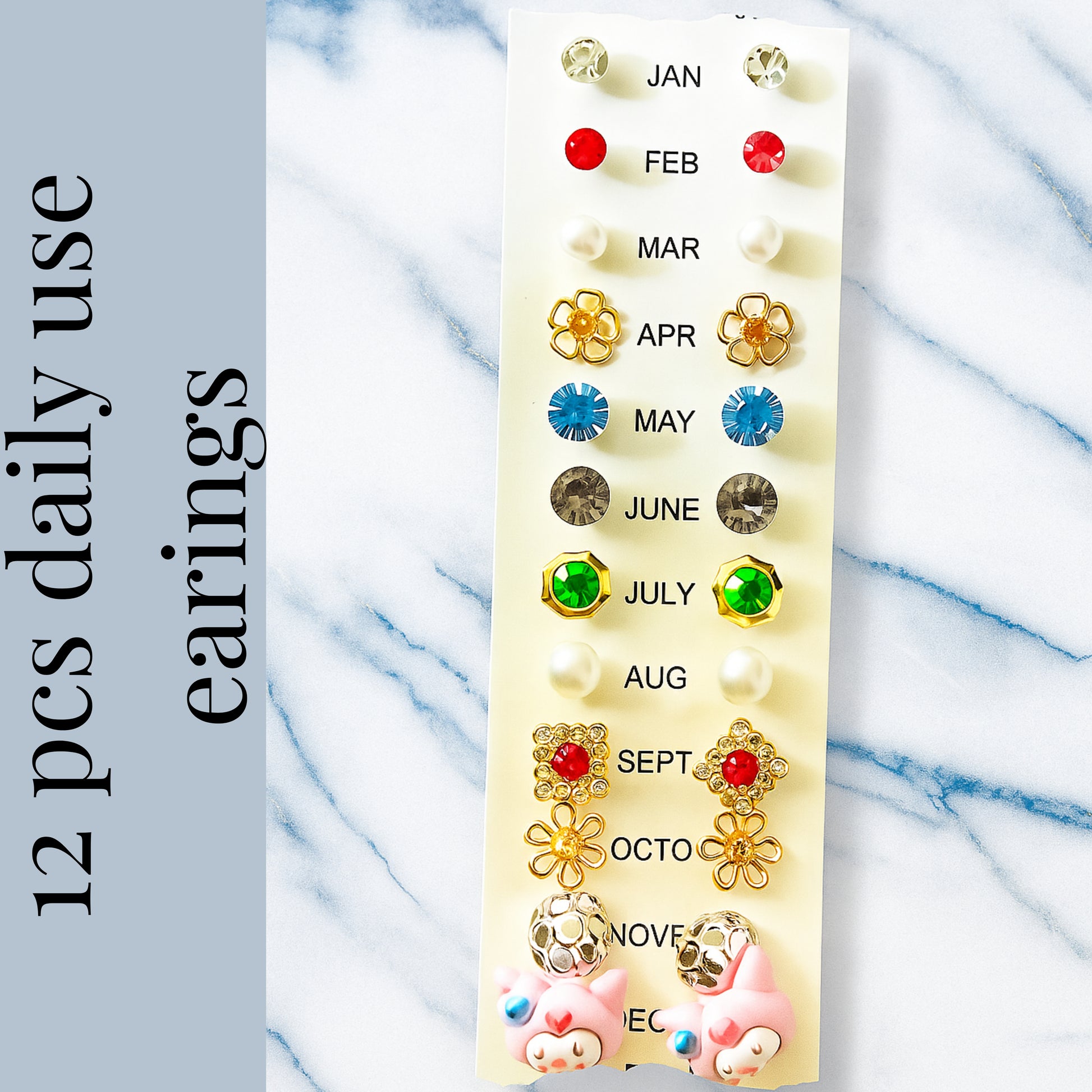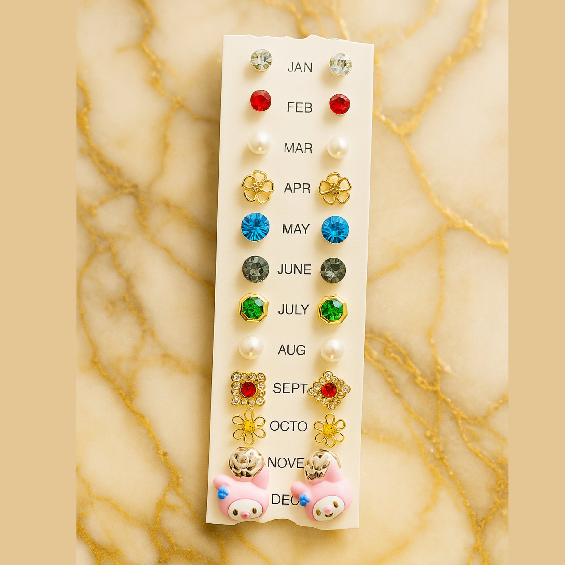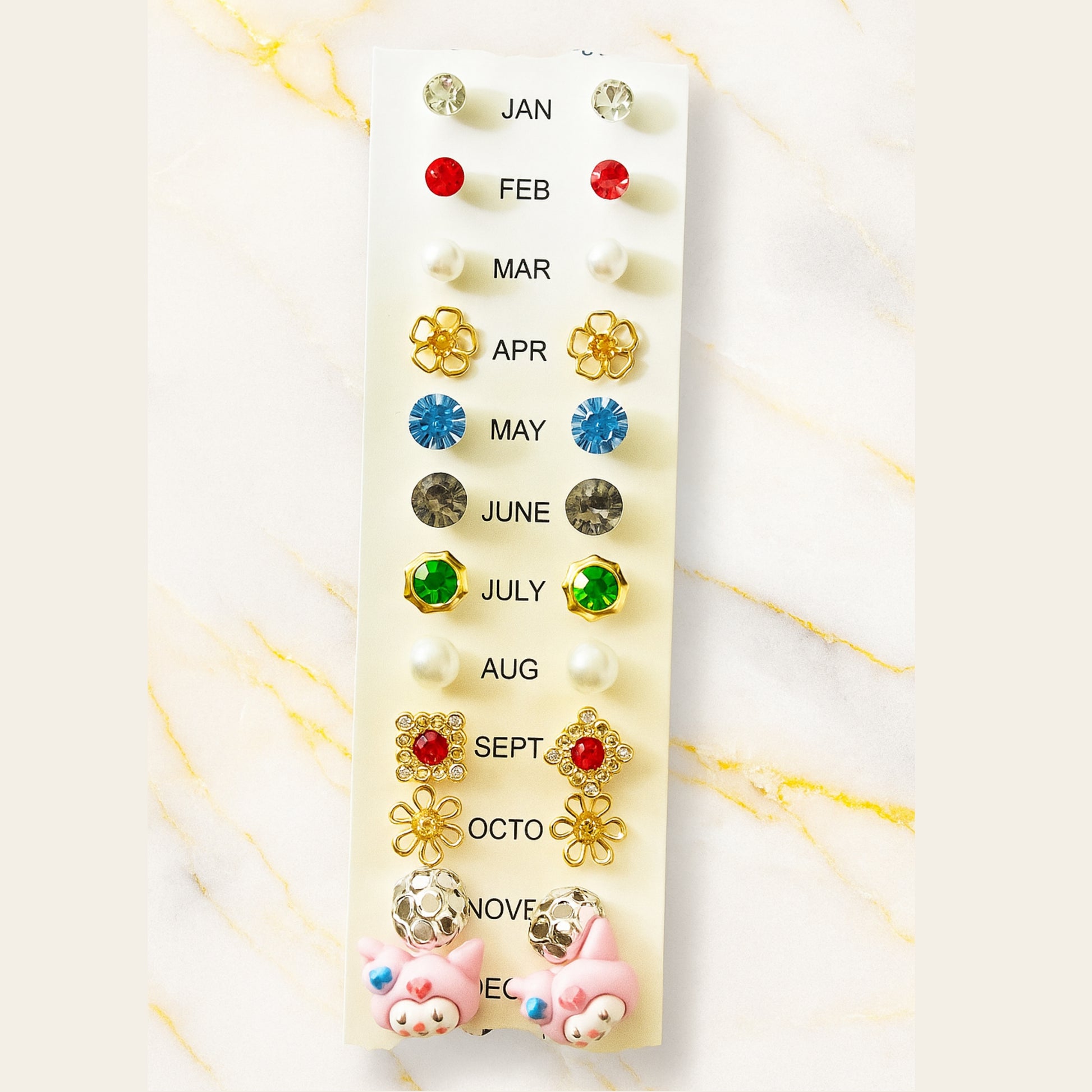 Discover your new favorite pair for every month! The My Lucky Charms Earring Pack is a fun and whimsical collection of 12 different daily-wear earrings. From colorful birthstone studs to dainty floral designs and adorable December characters, this set has something to match every mood and outfit. Mix and match to create your own unique look, or wear the pair for your birth month to bring a little extra luck and sparkle to your day.