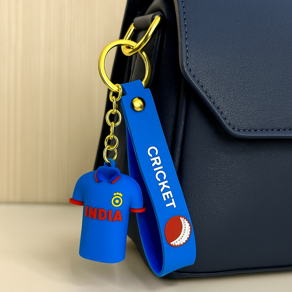 Show your love for cricket and Team India with this stylish Rohit Sharma jersey keychain and bag charm. Crafted from premium anti-tarnish silicone and metal, it’s designed to be both durable and lightweight. Featuring Rohit Sharma’s iconic #45 jersey in vibrant blue, this charm is perfect for attaching to keys, backpacks, handbags, or even gym bags. An ideal gift for cricket fans and sports lovers.