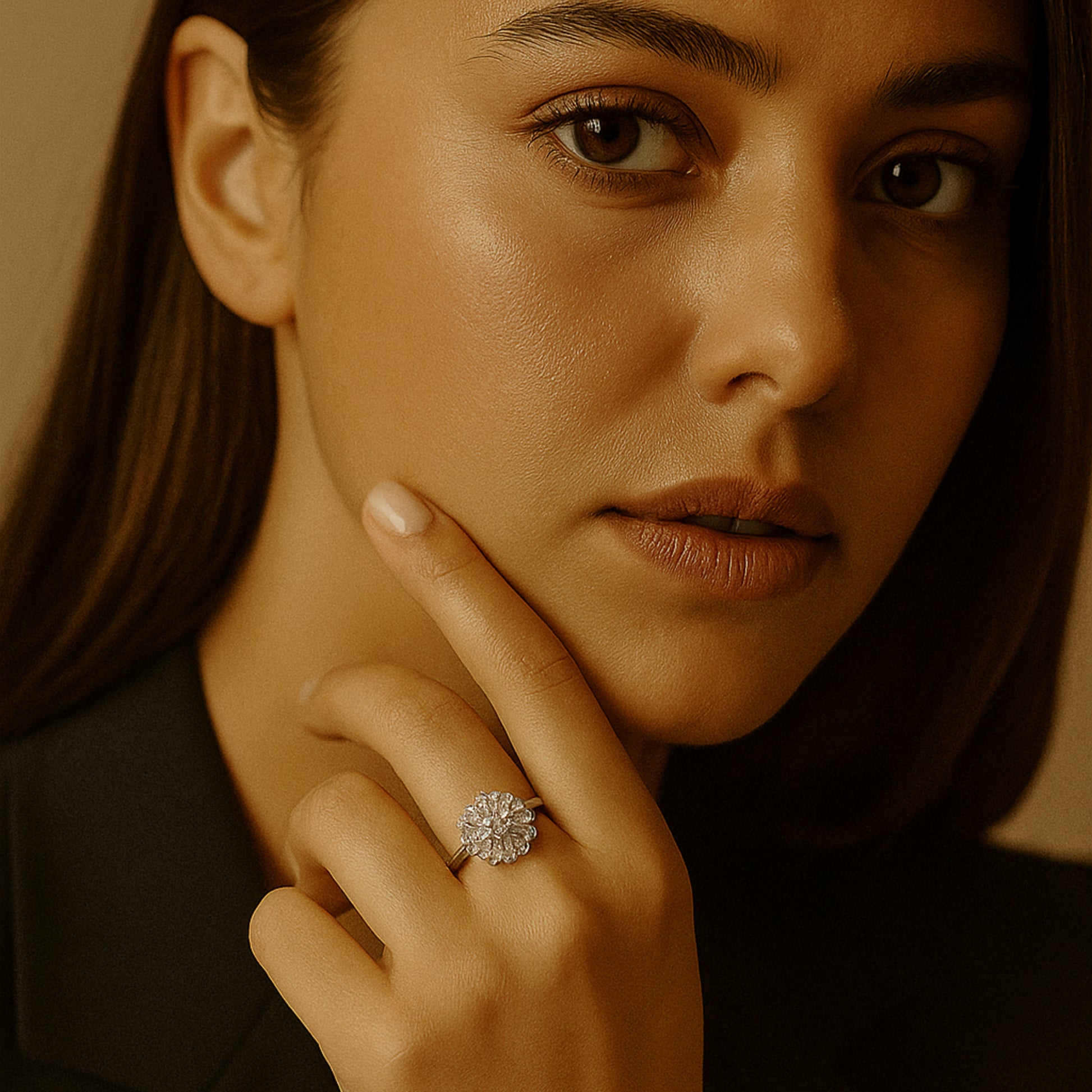 Discover the subtle beauty of The Aurora Bloom Ring. This exquisite silver-colored ring showcases a delicate floral-inspired setting, with a central shimmering stone embraced by meticulously placed crystals. Designed with a high-quality anti-tarnish coating, this ring promises lasting brilliance, backed by our 6-month warranty.