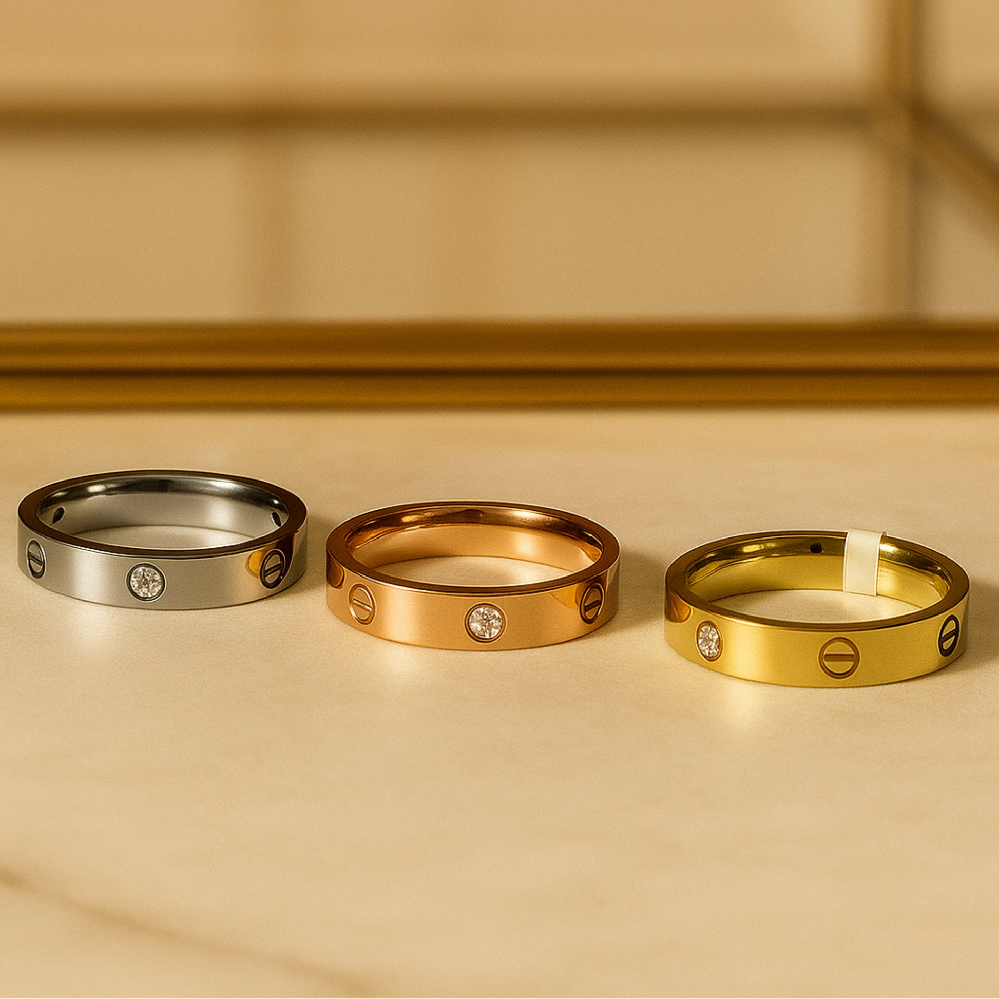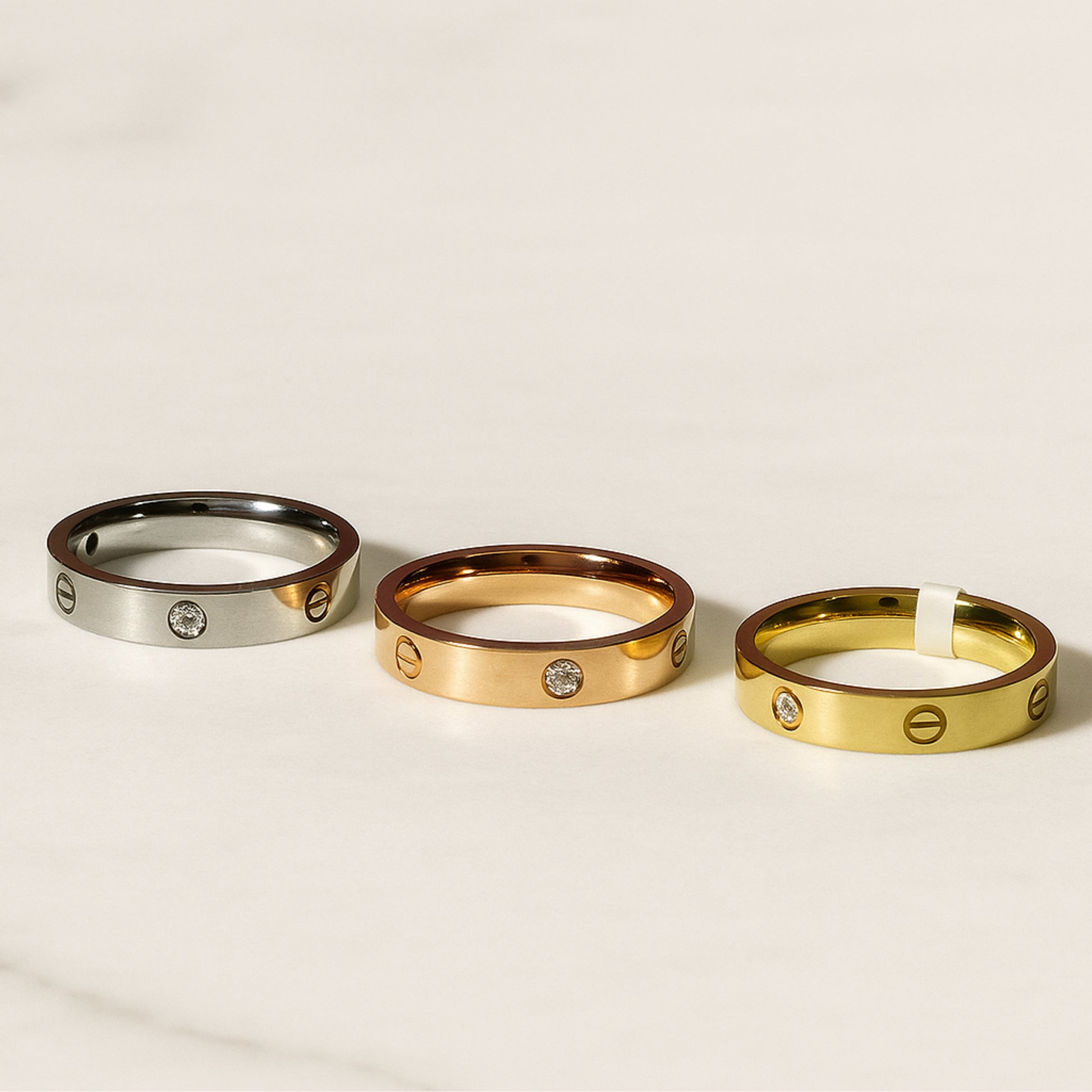 The Essential Tri-Tone Ring Set offers endless styling possibilities with three beautifully crafted bands in classic gold, contemporary silver, and vintage-inspired bronze. Each ring in this set is 100% anti-tarnish, promising enduring shine and effortless wear. Backed by a 6-month anti-tarnish guarantee, this versatile collection is a must-have for any jewelry lover. Wear them together to create a unique look, or individually to match your mood